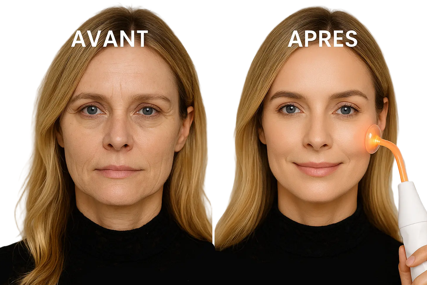 Une solution douce, naturelle et non invasive pour retrouver une peau plus ferme, lumineuse et pleine de vitalité — sans rendez-vous en institut.