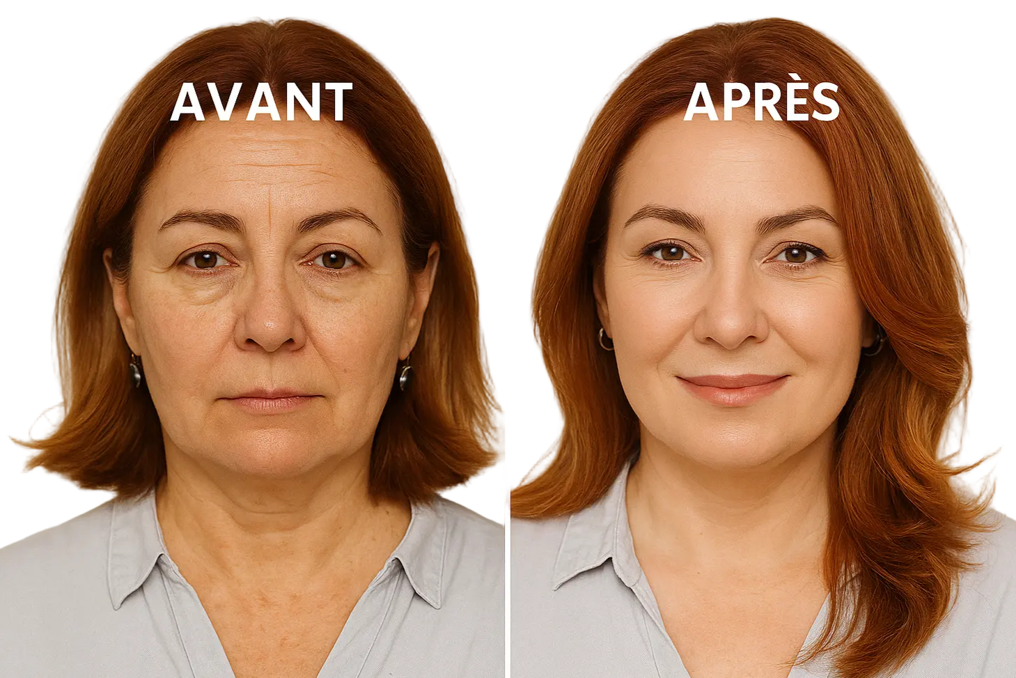 Après : En intégrant une routine simple et douce, vous reprenez le contrôle : une peau plus ferme, un teint lumineux, une confiance retrouvée – sans soins invasifs ni dépenses excessives.